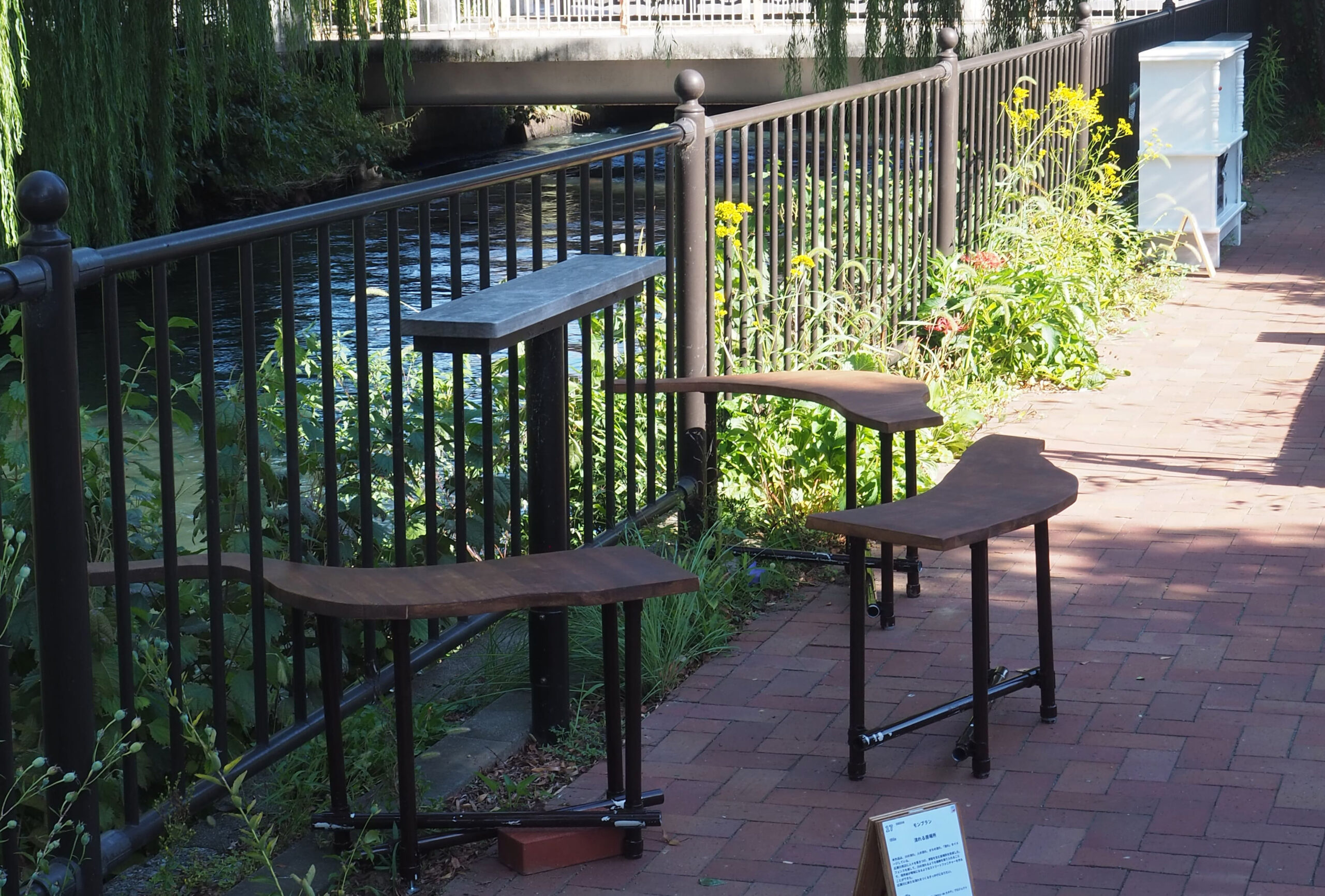 フェンスを越して、川の流れるような曲線を取り入れることで、境界線が曖昧になるようなストリートファニチャーを作ることができた。