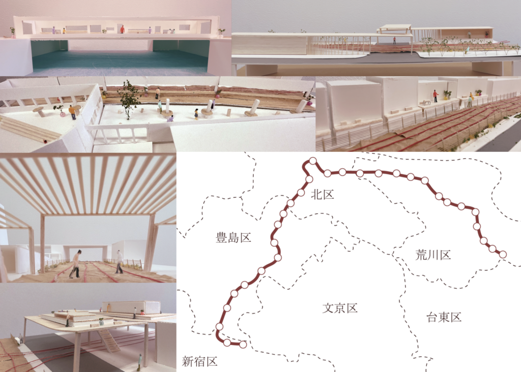 ⑦田代麻華:ヒトとモノが めぐる おすそわけ -居場所とちょうどいいつながりのあるこれからの都市のカタチ-【※学内最優秀賞(武蔵野賞)、むらさき会賞、INTERIOR 優秀学生賞、第46回レモン展出展、近代建築「卒業制作 2023」掲載】