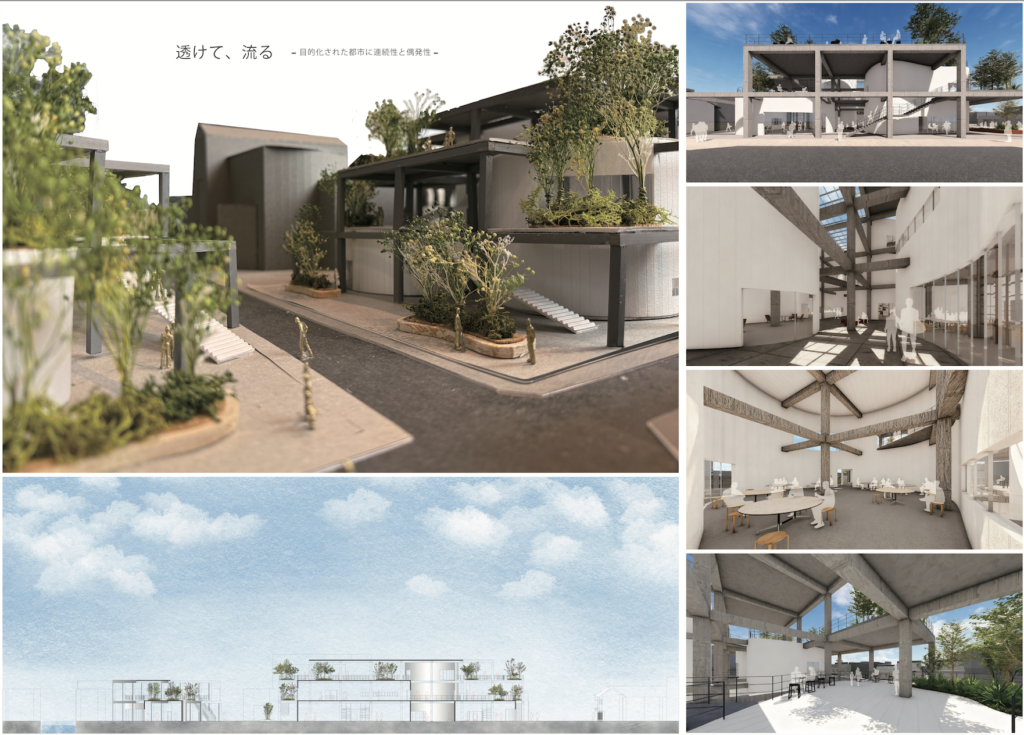 ②高江柄雄基:透けて、流る -目的化された都市に連続性と偶発性-【※学内2位優秀賞、MUレビュー末光陽子賞、近代建築「卒業制作 2026」掲載】